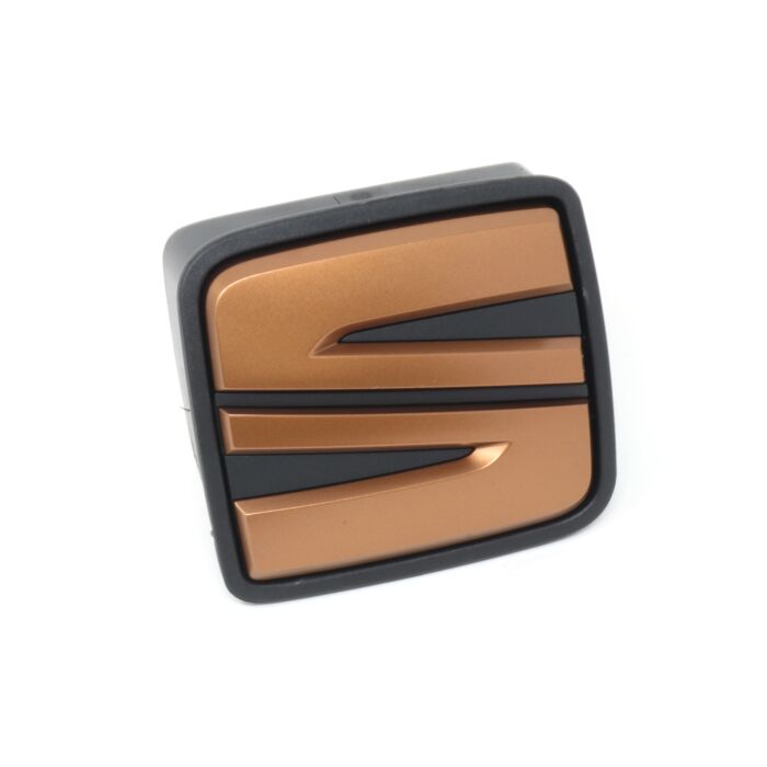 Seat Leon Cupra Heckklappengriff mit kupferfarbendem Seat Zeichen.
